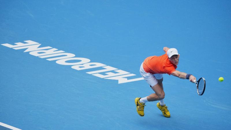 1月15日,意大利选手辛纳进行赛前训练,备战澳大利亚网球公开赛。新华社发